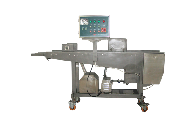 淋漿機是把產(chǎn)品通過淋漿部分后,下部由下淋漿槽上儲存的漿液均勻粘附上,上部由漿幕將漿液粘附上。通過風刀時,多余的漿液被吹落。然后輸入到下一工序。裹漿機適合于雞肉、牛肉、豬肉、魚、蝦等海鮮產(chǎn)品,肉餅上漿機適用于上面包屑和上粉前的工藝。雞塊上漿機可以對市場上流行的漢堡肉餅、麥樂雞塊、魚香漢堡肉餅、土豆餅、南瓜餅、肉串等產(chǎn)品進行上漿處理,是食品工廠理想的上漿設(shè)備。