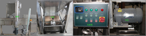 上面包康機(jī)是通過(guò)料斗里泄出的面包糠和下網(wǎng)帶上的面包糠將產(chǎn)品均勻涂裹在產(chǎn)品上,經(jīng)壓輥壓緊(上下網(wǎng)帶上的面包屑厚度可以方便調(diào)節(jié)),上康后經(jīng)風(fēng)機(jī),將多余的面包屑吹落。進(jìn)入下一道程序。